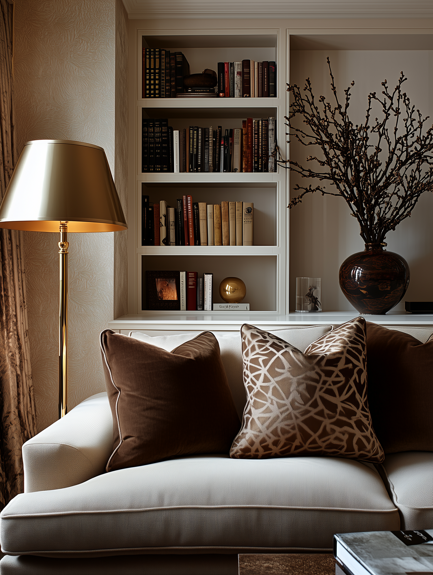 Discover the charm of our Surrey Project, where classic elegance meets modern comfort. This inviting space features tailored upholstery, warm tones, and a curated selection of accessories to create a cozy yet sophisticated ambiance. With custom-built shelving and refined design details, this room effortlessly balances style and practicality, making it the perfect retreat for relaxation and gatherings.